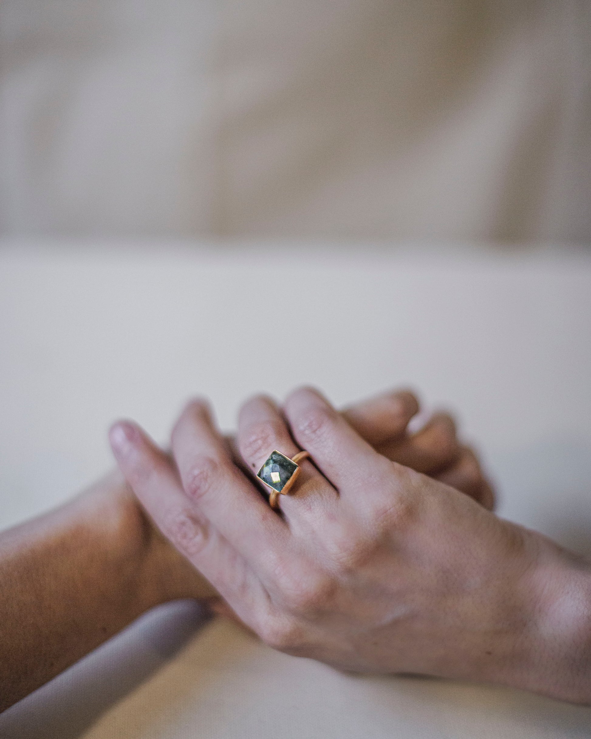 La Labradorita es una piedra poco común por su brillo interno, una luz que aparece y desaparece como si respondiera a quien la mira. Es un mineral asociado a la intuición lúcida, a la percepción fina y a la capacidad de leer lo sutil sin perder el centro. En forma de anillo -en la mano que crea, firma, sostiene y elige- la labradorita ayuda a elegir desde un lugar más claro y conectado. Es un amuleto para actuar con intuición, proteger la visión interna y moverte con la seguridad de lo que ya sabes por dentro, incluso antes de ponerlo en palabras.