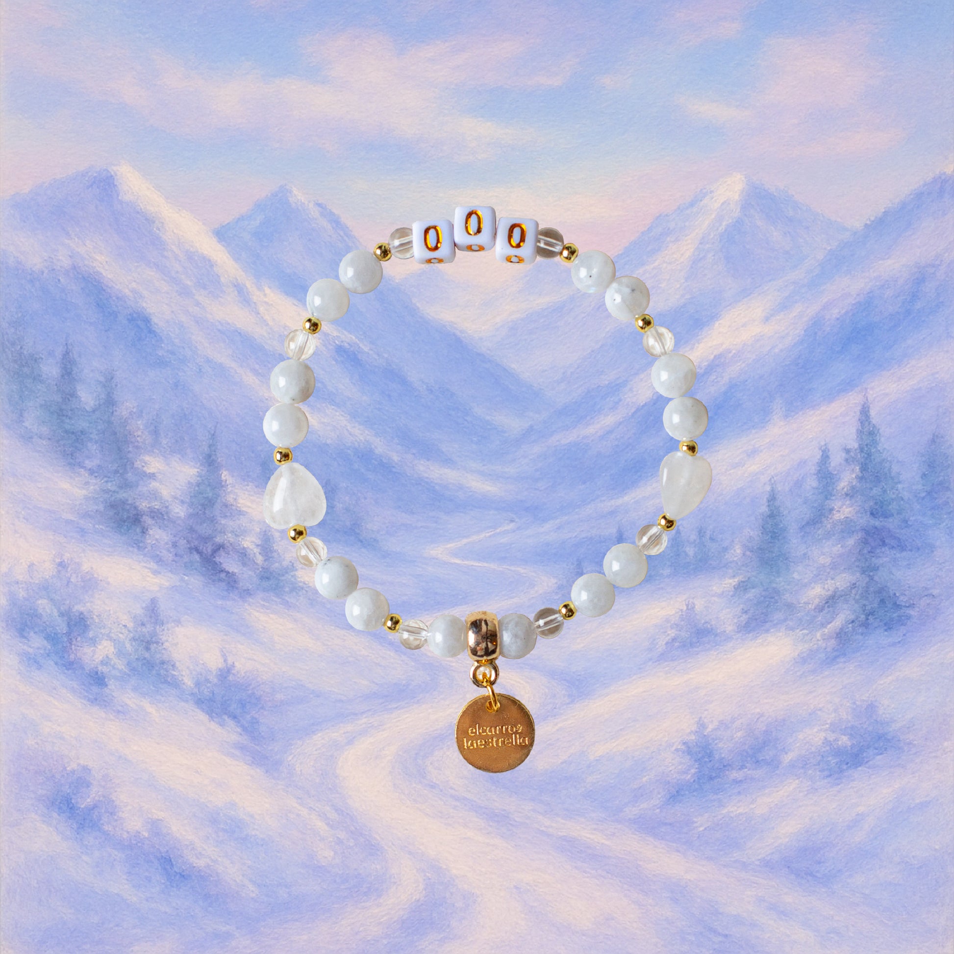 El 000 es unidad, ciclo infinito y conexión con la fuente. La Piedra Luna acompaña cambios, conecta con lo femenino y lo lunar, mientras el Cuarzo Cristal aporta claridad emocional y amplifica su magia. Es un recordatorio de fluir con los ciclos de la vida.